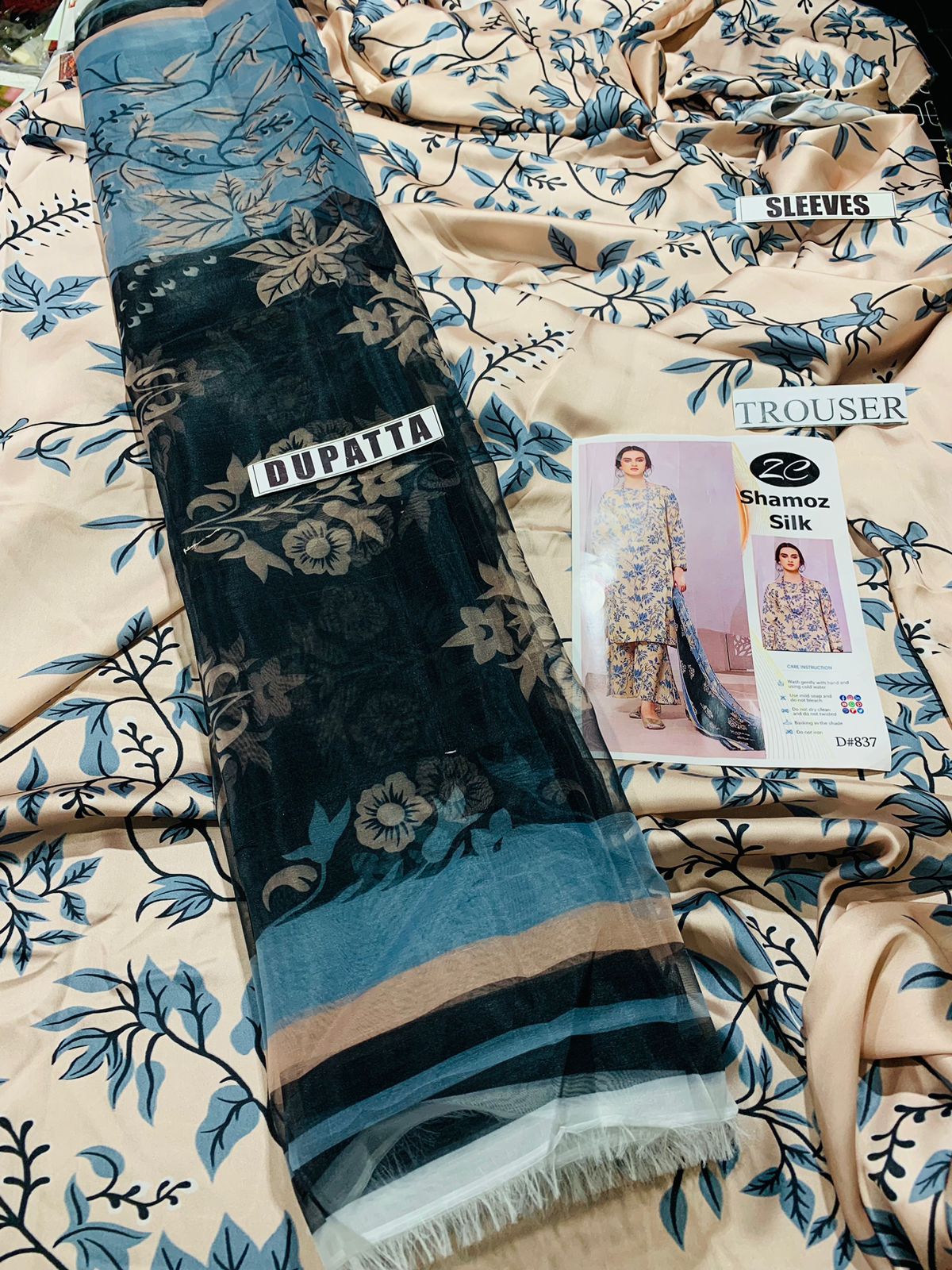 3 Piece - Printed Airjet Viscous Silk Suit | FCC - 837