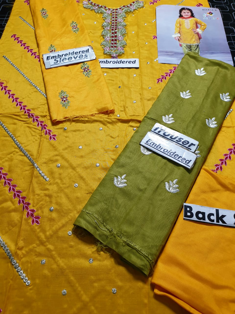 Maria B D-266 Yellow Kids Wear Linen Embroidered two piece